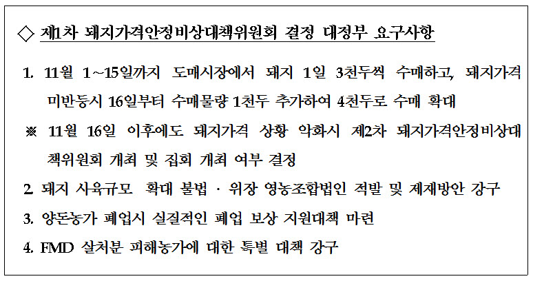 [보도자료]돼지가격 미반등시 11/16부터 돼지 4천두로 수매 확대 |
