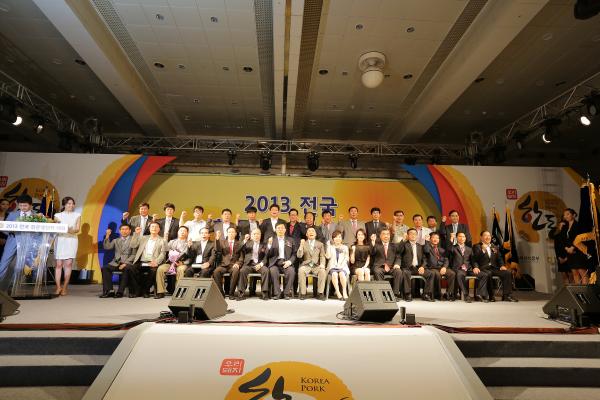 “위기를 넘어 한돈산업의 새 시대를 열자!” ‘2013 전국 한돈생산자 대회’ 개최 - 지난 6월 19일, 과천 경마공원 마사회 컨벤션홀에서 열려 김용환 강원도협의회장, 이철구 임실지부장, 서영수 경산지부장, 이희득 평택지부장, 장상윤 증평지부 이사 농림축산식품부 장관상 영예 국내 한돈 생산자의 위기극복을 위한 대화합의 장이자 저돈가와 FTA의 파고를 넘고 한돈산업의 비전을 제시하기 위한 ‘2013 전국한돈생산자대회’가 지난 6월 19일(수) 경기도 과천 한국마사회 컨벤셜홀(6F)에서 개최됐다.