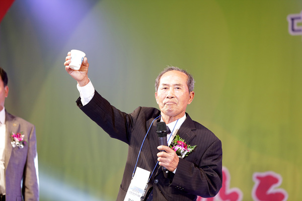 2부행사 시간에 건배제의를 하고 있는 최상백 원로