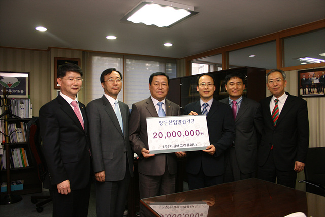 ㈜카길애그리퓨리나(대표이사 이보균)이 지난 5월 6일 대한양돈협회를 방문하여 김동환 양돈협회 회장에게 양돈산업 발전기금 2천만원을 기탁했다.