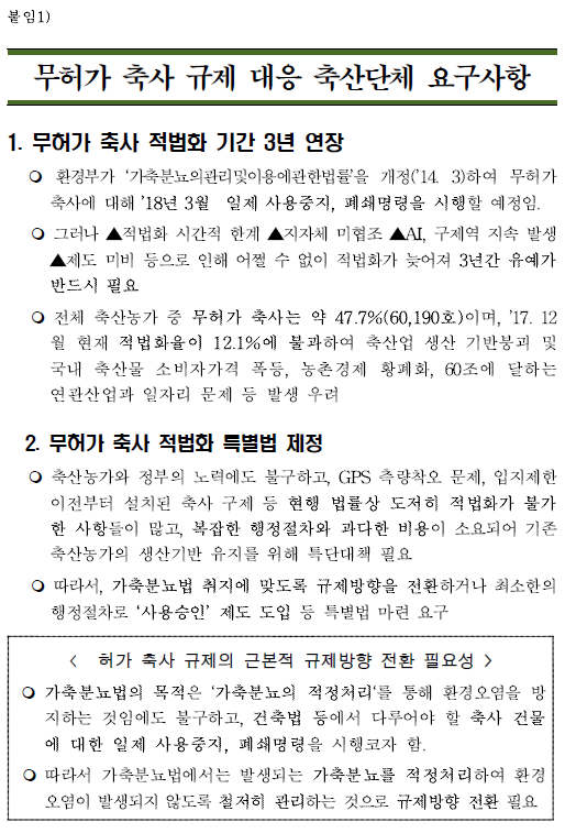 [공문] \'무허가축사 적법화 기한 연장 특별법 촉구\' 전국 축산인 총궐기대회 참석 요청