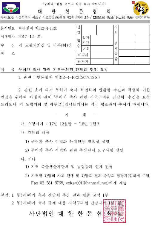 무허가 축사 관련 지역구의원 간담회 추진 요청