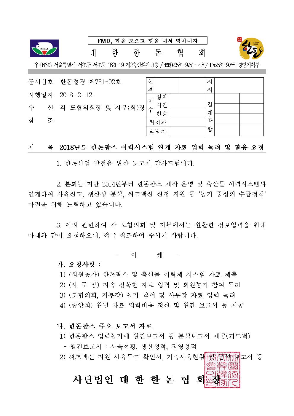 첨부파일 다운로드 731-02(시행) 2018년도 한돈팜스 이력시스템 연계 자료 입력 독려 및 활용 요청.pdf