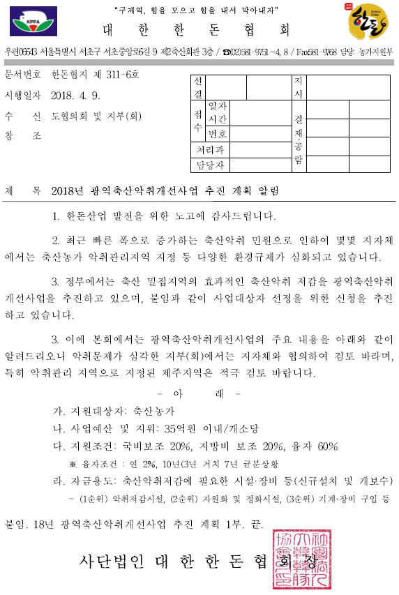 [공문] 2018년 광역축산악취개선사업 추진 계획 알림