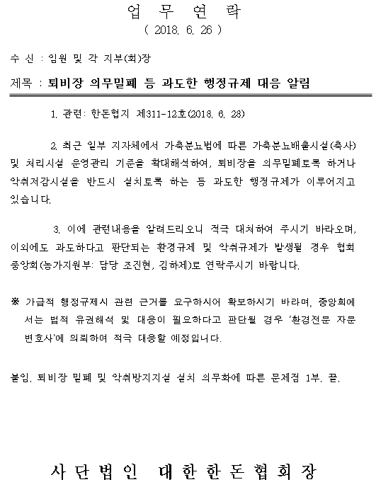 첨부파일 다운로드 퇴비장 의무 밀폐 등 과도한 행정규제 대응 알림.hwp
