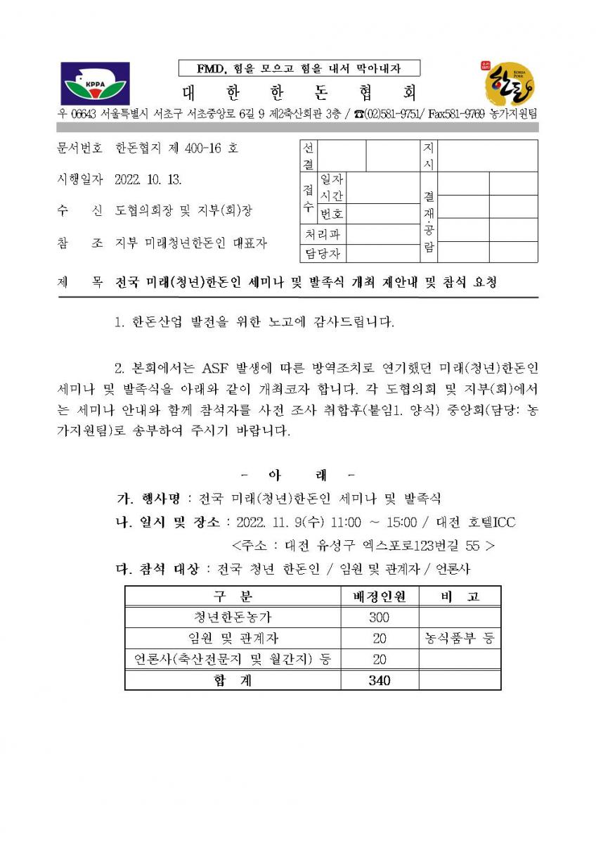 첨부파일 다운로드 400-16(시행) 전국 미래청년한돈인 발족식 개최 재안내 및 참석 요청(지부)001.jpg