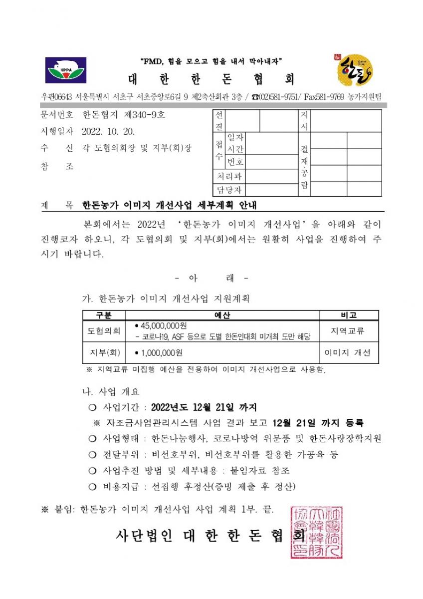 첨부파일 다운로드 340-9(시행)한돈농가 이미지 개선사업 세부계획 안내.pdf