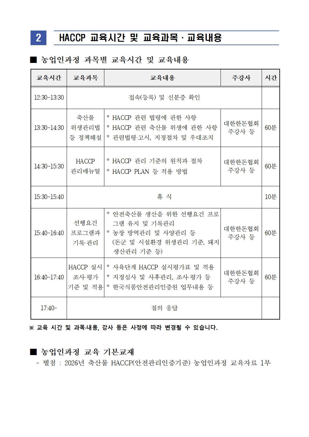 첨부파일 다운로드 402-1(붙임1) 2026년도 대한한돈협회 축산물 HACCP 교육 계획(안).pdf