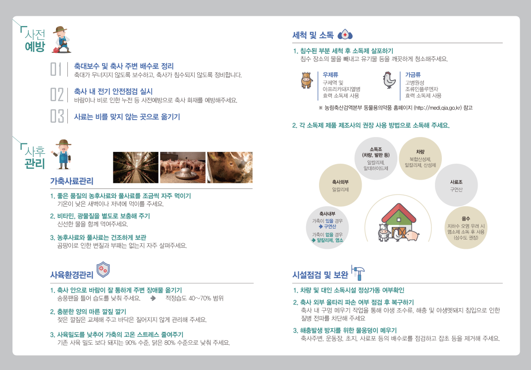 - 축대가 무너지지 않도록 보수하고, 축사가 침수되지 않도록 정비