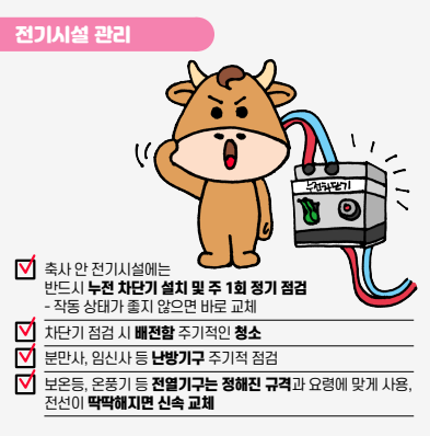 - 바람이나 비로 인한 누전 등 사전예방으로 축사 화재 예방