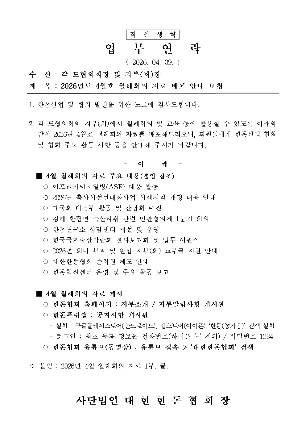 [업무연락] 2026년도 4월호 월례회의 자료 배포 안내