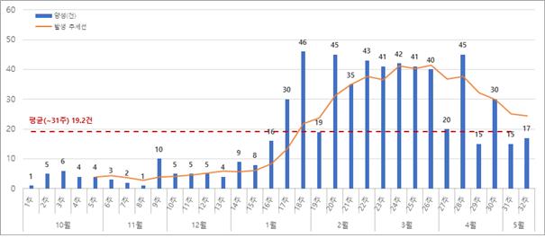 [ASF본부] 야생멧돼지 ASF 발생현황(5월 7일~12일) 및 경향분석(5/12기준,누적612건) |