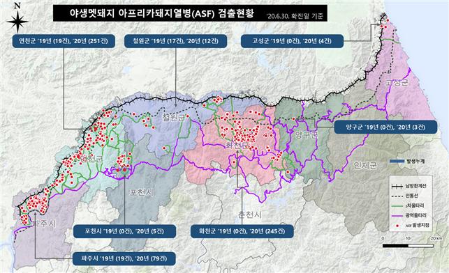 [ASF본부] 장마철 ASF 대응 시설물 집중관리, 멧돼지654건발생(6/30,18시) |