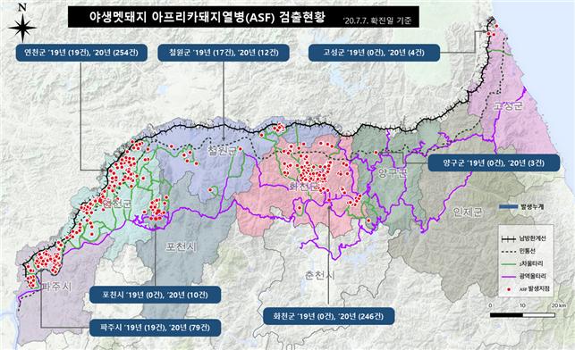 [ASF본부] 여름철 ASF 환경시료 검사 강화, 멧돼지663건발생(7/7,18시) |