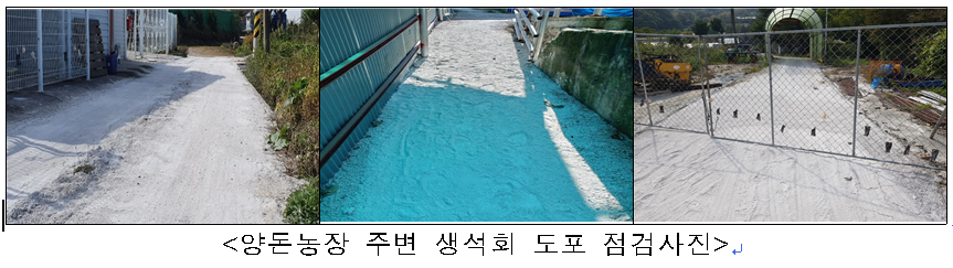 주요 가축전염병 방역 추진상황 (2020.10.29.) 【 아프리카돼지열병(ASF) 】 □ 아프리카돼지열병 중앙사고수습본부(이하 ‘중수본’)는 10월 28일, 경기·강원지역 양돈농장 1,245호(매일 실시중)에 대한 전화예찰을 실시한 결과, 아프리카돼지열병 의심축은 발견되지 않았다. □중수본은 한돈협회의 협조로 접경지역 양돈농장 395호를 대상으로 농장 주변 생석회 벨트 구축여부를 점검하고, 미흡한 농장에 대한 보완조치(추가도포)를 실시하였다.