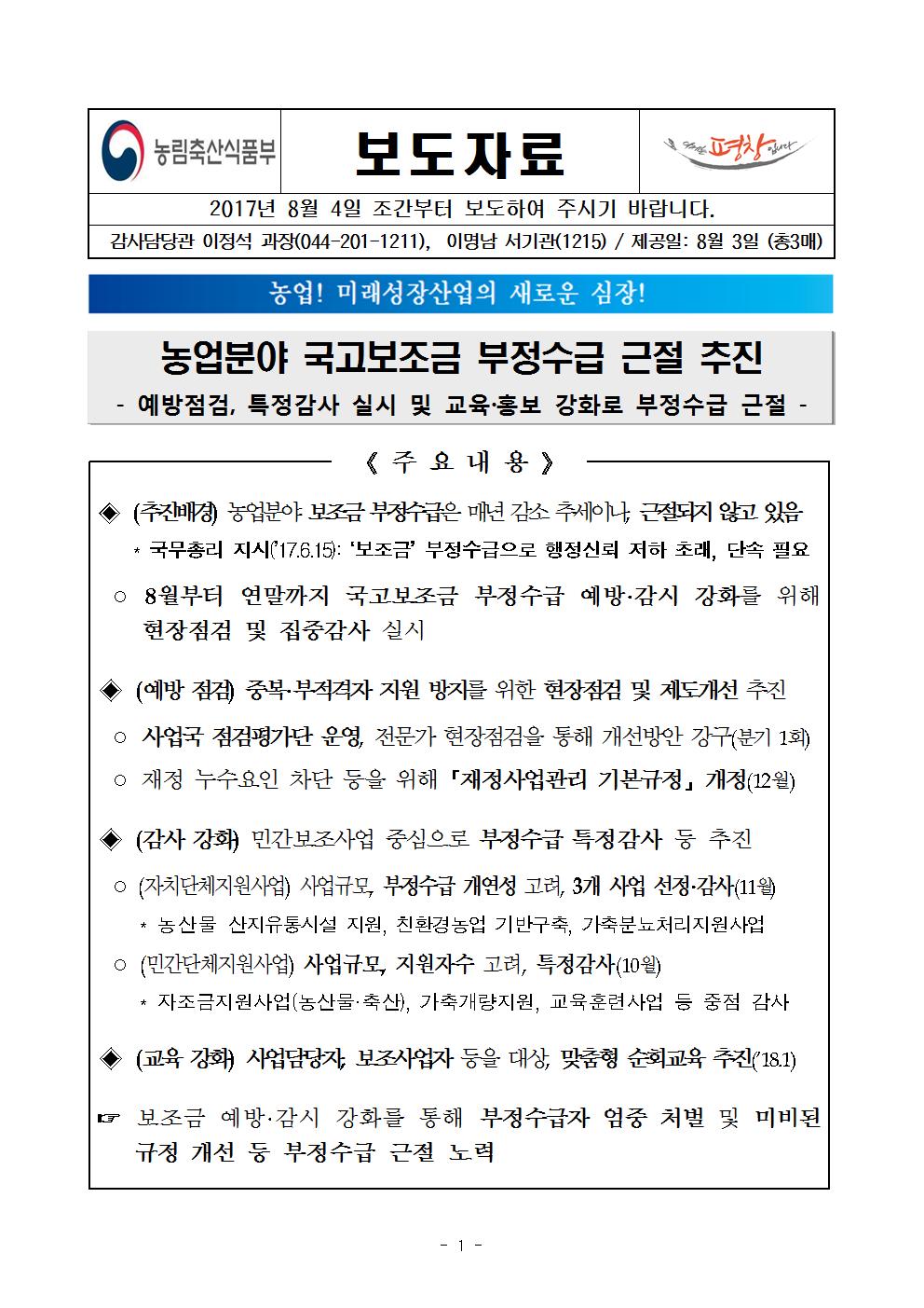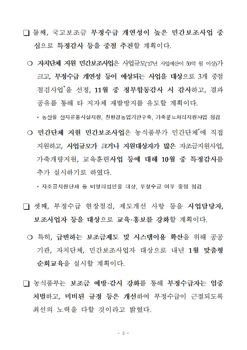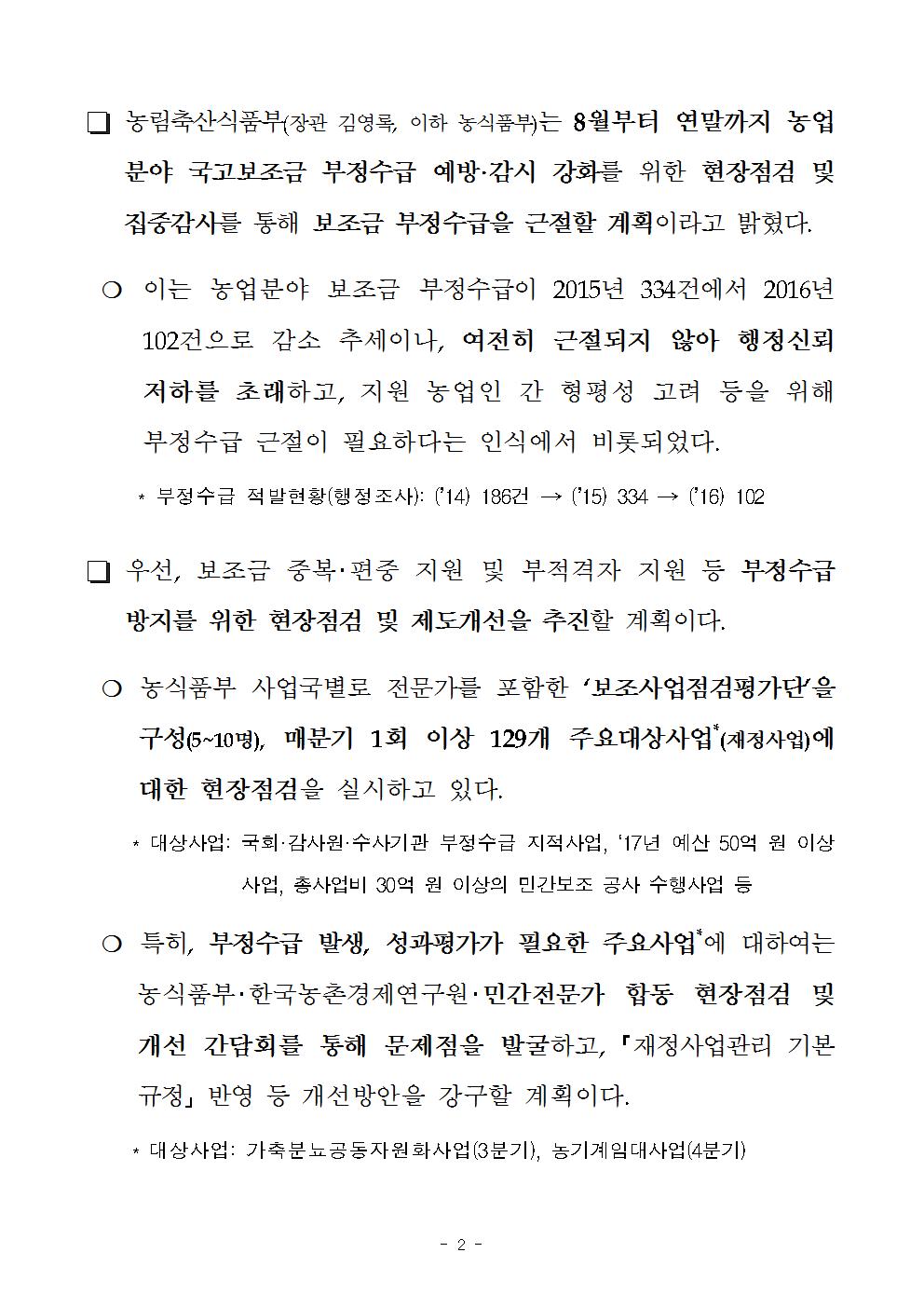 [농림부 보도자료] 농업분야 국고보조금 부정수급 근절 추진