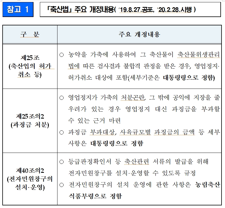 [농림부] 축산업 영업정지에 갈음하는 과징금 부과제도 등 시행(’20.2.28) |