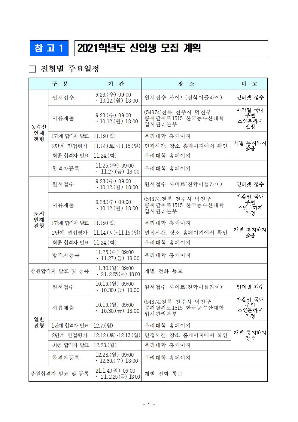 | 첨부파일 | 다운로드 한국농수대학, 2021학년도 신입생 수시모집 진행(9.21, 조간).hwp | |||