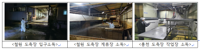 □ 중수본은 10월 11일, 화천의 첫 확진농가(10월 9일 확진)와 인근(10km 이내) 두 농가에 대한 살처분*을 완료하였으며, * 화천군 살처분·매몰 대상 : 3농가, 돼지 2,244두(각 721두, 1,020두, 503두) ㅇ 두 번째 확진 농가(최초 확진된 농가와 2.1km 떨어진 농가)와 역학관계에 있는 것으로 확인된 경기도 포천의 두 농가에 대한 예방적 살처분도 실시중이다. □ 또한 중수본은 10월 11일, 국무총리 주재의 아프리카돼지열병 상황점검 회의에서 초동 대응을 위한 방역조치 상황과 향후 계획에 대해 논의하였다. ㅇ 중수본은 아프리카돼지열병의 추가 발생을 방지 하기 위해 발생지점 및 인근지역과 발생농가와 역학관계에 있는 농가·축산시설 등을 중심으로 정밀검사 및 집중 소독을 실시한다고 밝혔다. □ 김현수 중수본부장은 10월 11일 개최된 아프리카돼지열병 상황회의(중수본부장 주재)에서, ㅇ “발생농장과 역학관계에 있는 농가·축산시설 등을 최대한 신속히 파악하여 집중 소독할 것”을 지시하였고, ㅇ 양돈농가들을 대상으로 “아프리카돼지열병의 추가 발생이 없도록 농장에 출입하는 차량과 사람들에 대해 철저한 소독·관리를 해줄 것”을 당부하였다. [출처: 농림축산식품부 보도자료 2020. 10. 12.] |