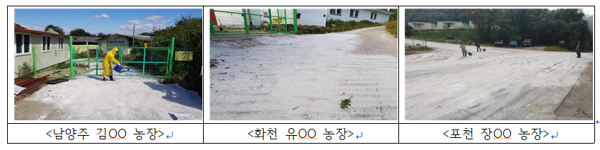 □ 중수본은 10월 10일 야생멧돼지 방역대(양성개체 발견지점 반경 10km) 내 양돈농장 175호에 대해 긴급 현장점검반(18개)을 파견하여 소독·방역실태를 점검한 결과, 생석회 도포가 미흡한 농가가 다수 있음을 확인하였고, ㅇ 이에 따라 10월 11일, 경기·강원 북부 및 인접 14개 시군 양돈농장 358호에 대해 긴급 생석회 도포를 실시하였다.
