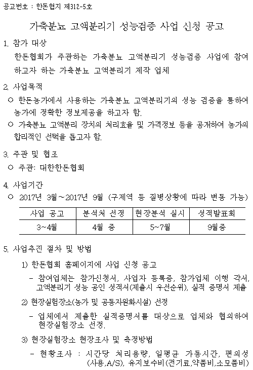[공모] 가축분뇨 고액분리기 성능검증 사업 신청