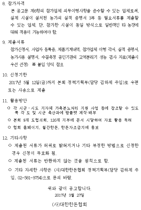 다음게시물 [입찰공고] 기후변화에 따른 양돈분뇨 적정처리 방안