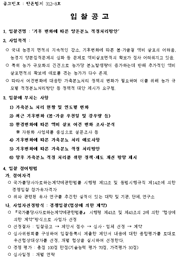 [입찰공고] 기후변화에 따른 양돈분뇨 적정처리 방안