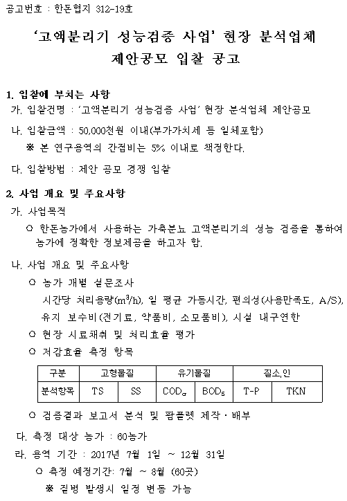 312-19(공고문) ‘고액분리기 성능검증 사업’ 추진에 따른 현장 분석처 선정 공고.hwp