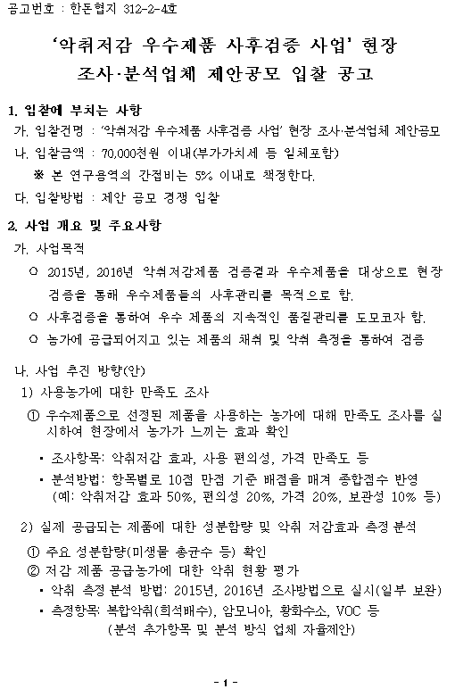 312-2-4(공고문) ‘악취저감 우수제품 사후검증 사업’ 현장 분석업체 제안공모 입찰 공고.hwp
