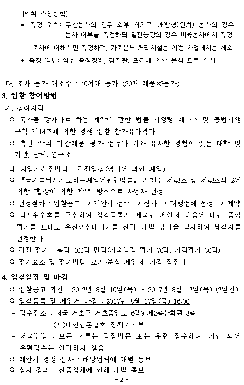 [입찰공고] ‘악취저감 우수제품 사후검증 사업’ 현장 조사·분석업체 제안공모 입찰 공고