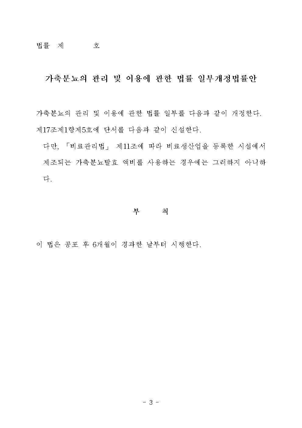 가축분뇨 액비 살포 규제 근본적 해결 법안발의
