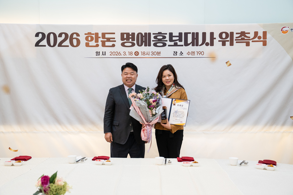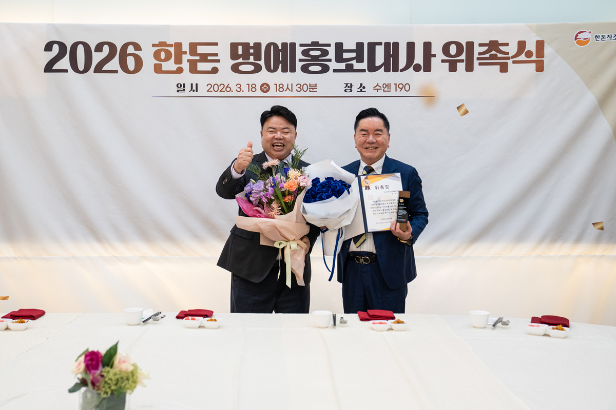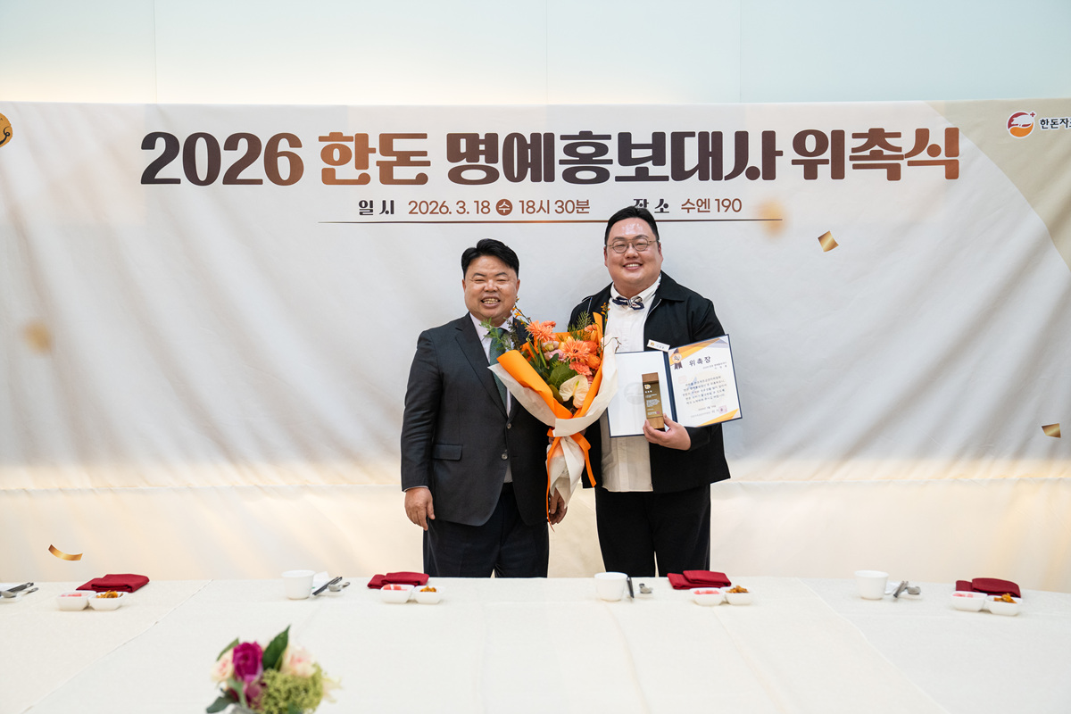 한돈자조금관리위원회(위원장 이기홍, 이하 한돈자조금)가 우리돼지 한돈의 우수성과 가치를 널리 알릴 ‘2026 한돈 명예홍보대사를 위촉했다.한돈자조금은 지난 318일 서울 중구 수엔190에서 ‘2026 한돈 명예홍보대사 위촉식을 개최하고, 개그맨 정종철을 비롯해 의료·스포츠·요리·방송·정치 등 다양한 분야에서 활동 중인 인사 17인을 명예홍보대사로 위촉했다고 밝혔다.