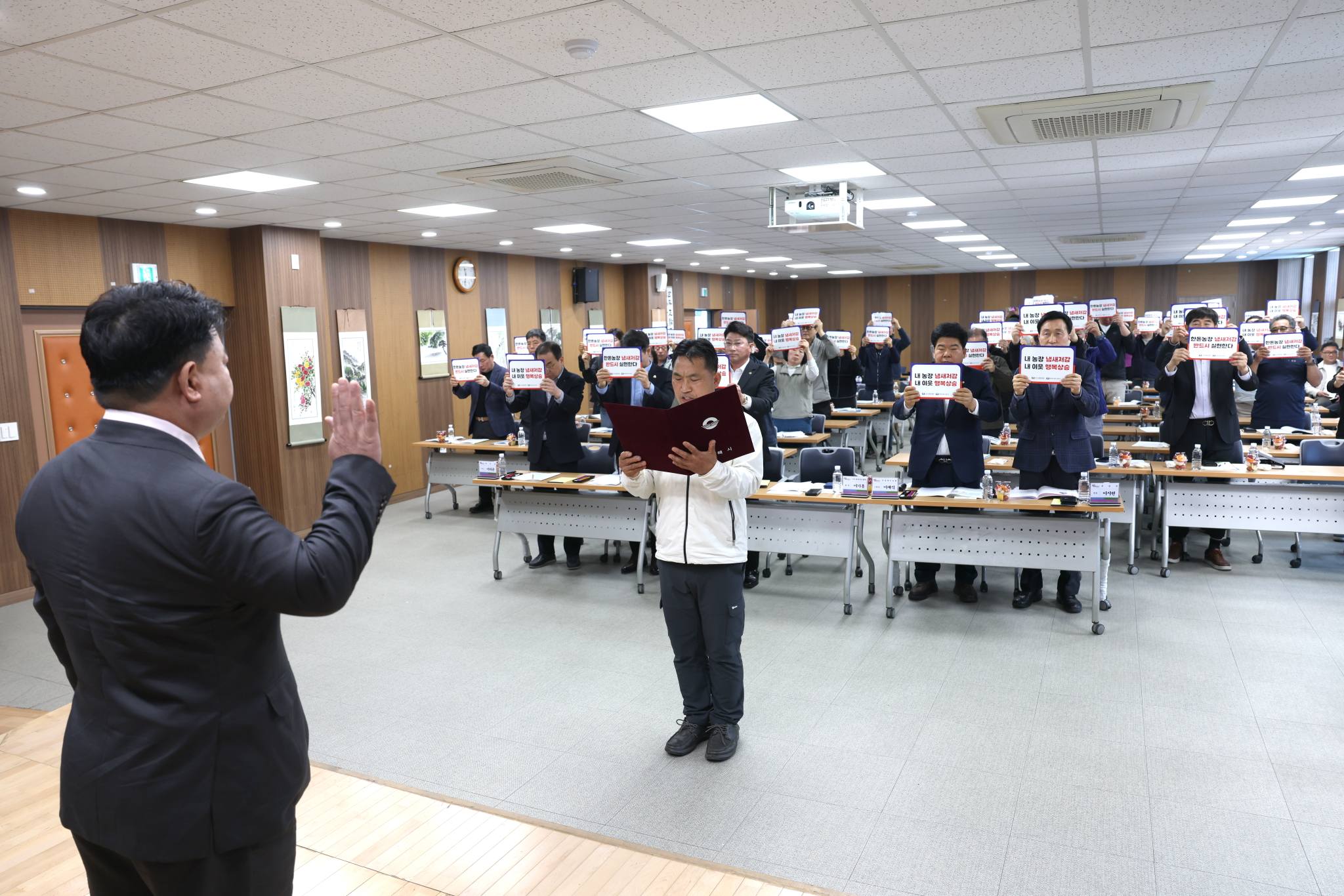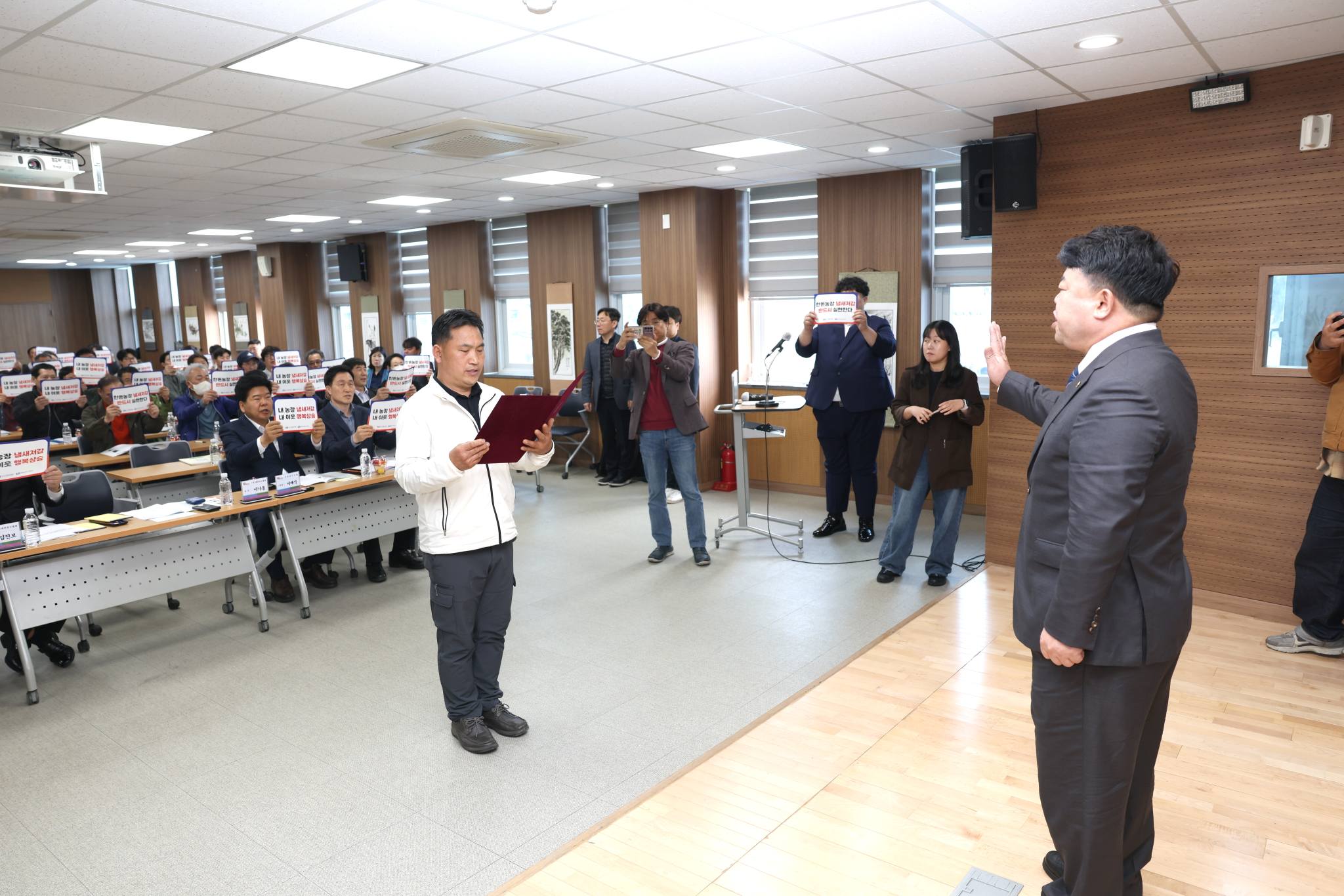 한림지역 농가들은 '김해 한림 냄새저감 활동 결의문'을 채택하고 참여 농가 협약서를 작성하며 자율적인 노력으로 악취 문제를 해결하겠다는 의지를 다졌다.