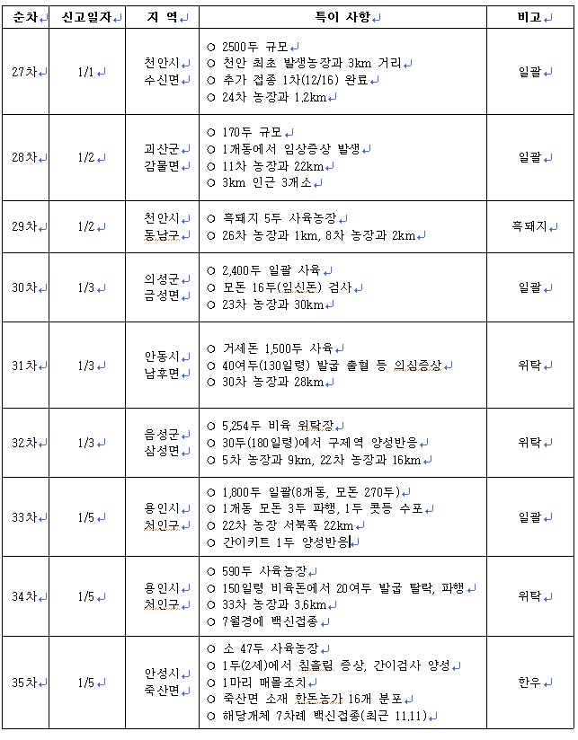 최근 구제역 발생동향(1월 6일, 11시 기준)-35차