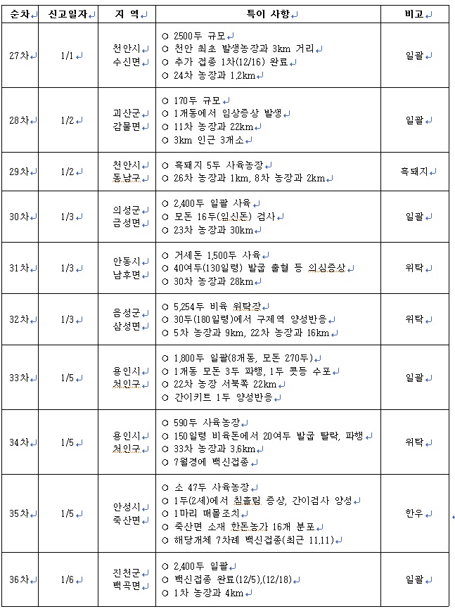 최근 구제역 발생 동향(2015. 1. 8. 9시 기준)_36차