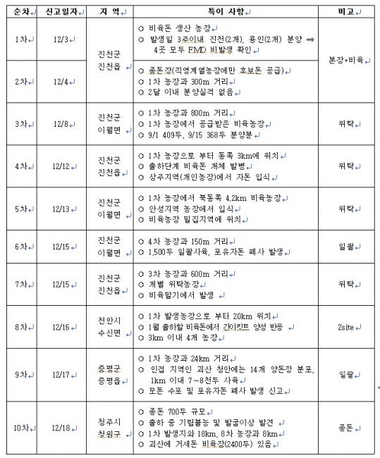 최근 구제역 발생 동향(2015. 1. 11. 10시 기준)