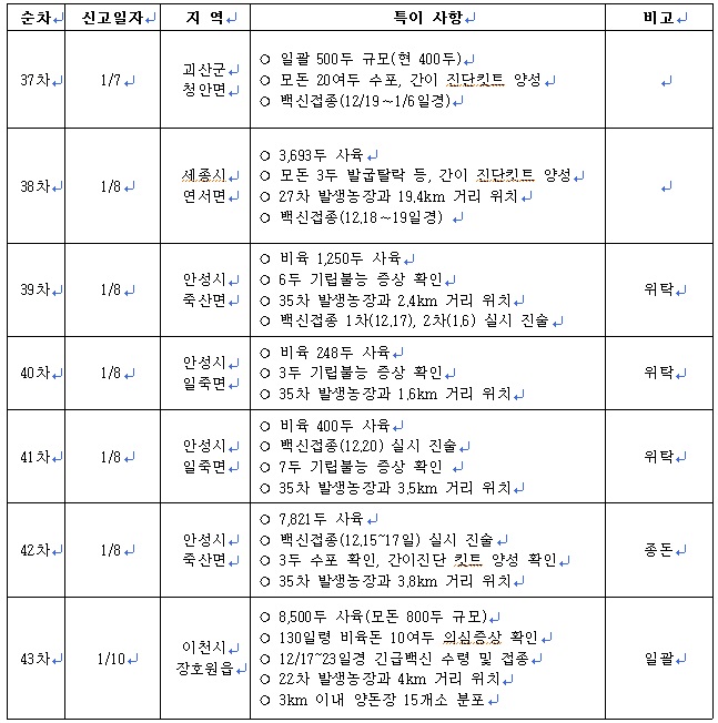 최근 구제역 발생 동향(2015. 1. 11. 10시 기준)_43차