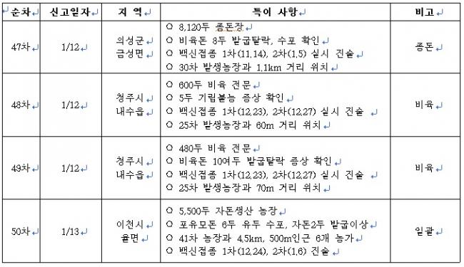 최근 구제역 발생 동향(1월 14일, 14시 기준)_50차