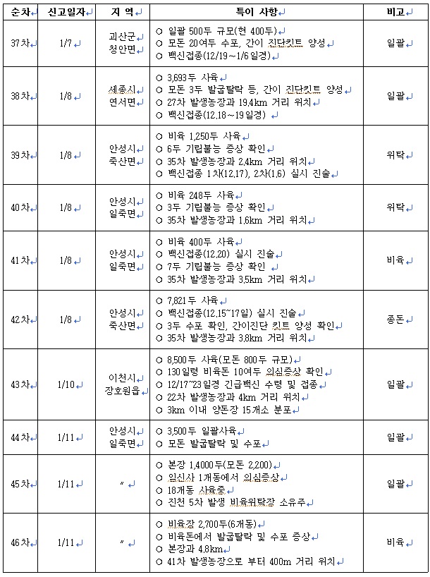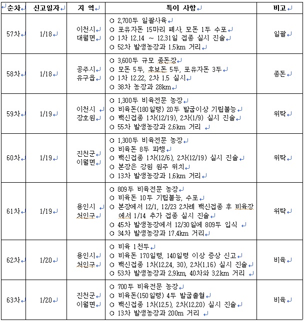 최근 구제역 발생 동향(1. 23. 10시 기준)_63차