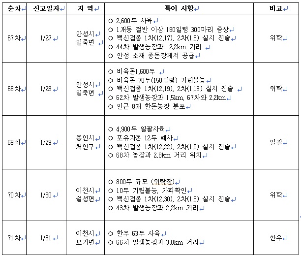 최근 구제역 발생 동향(2월1일, 9시 기준)
