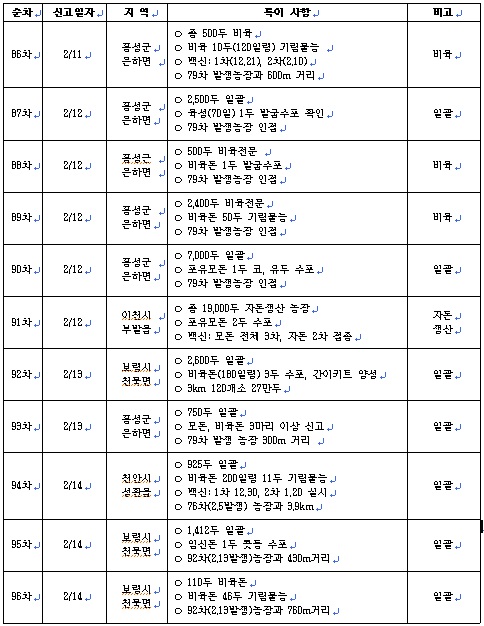 최근 구제역 발생 동향(2월16일, 17시 기준)