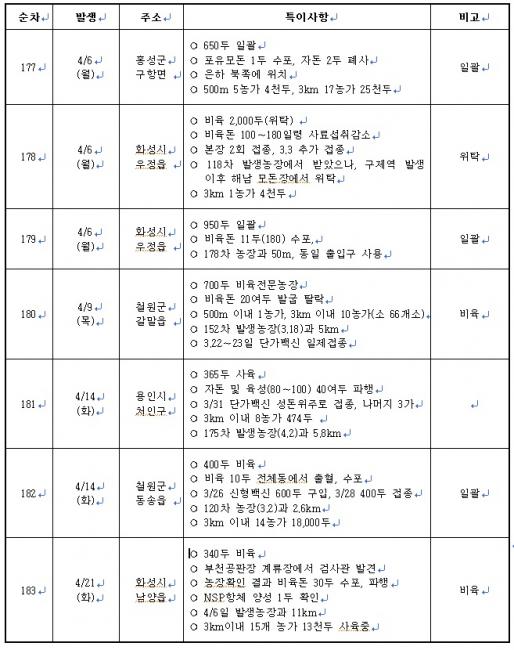 최근 구제역 발생 동향(4월 28일 기준)_183차