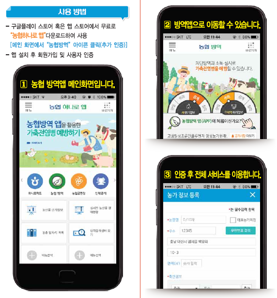 질병정보 신속전달 위한 '농협 방역앱(App)' 이용하세요