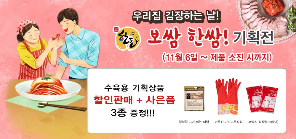 한돈자조금관리위원회는 상대적으로 돼지고기 가격이 상승하는 김장철, 소비자 부담을 덜고 우리돼지 한돈의 우수성을 알리기 위해 지난 11월 6일부터 공식 온라인 쇼핑몰, 한돈몰을 통해 김장 맞이 보쌈 기획전을 선보인다.
