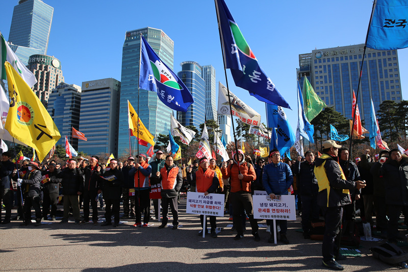 대한한돈협회, 전국한우협회를 비롯한 축산단체와 전국농민총연맹과 농민헌법운동본부 등은 1118일 여의도공원 문화마당에서 '농민권리와 먹거리 기본권 실현을 위한 전국대회'를 개최했다.