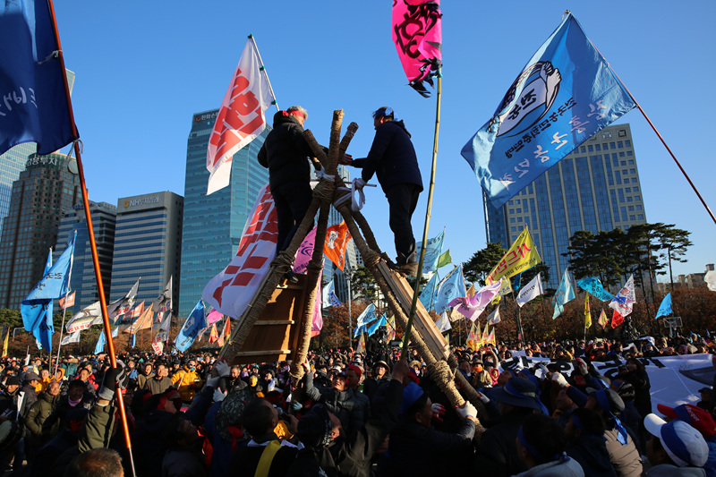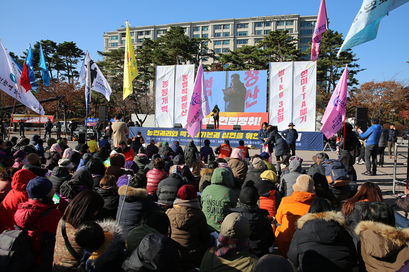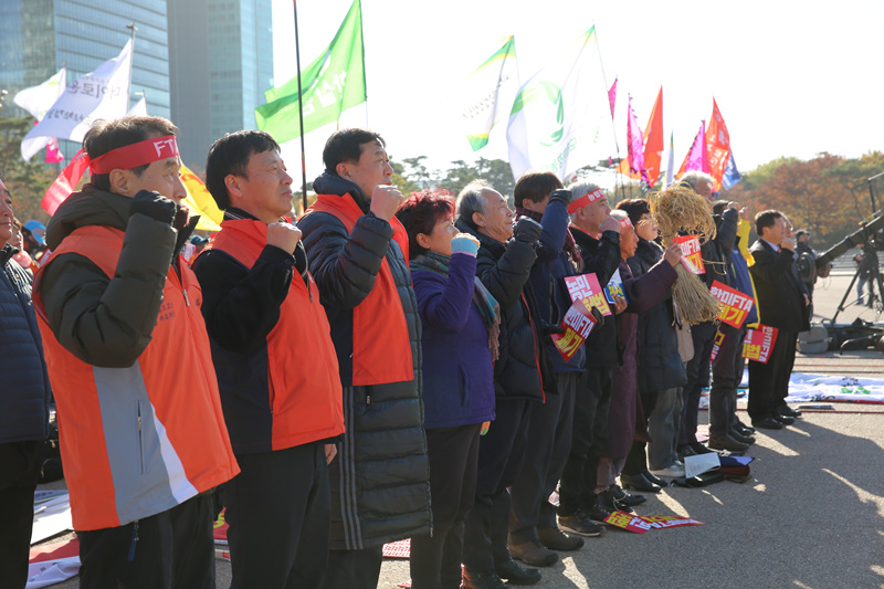 영하 6도의 차가운 날씨 속에서도 이날 농민들은 두꺼운 옷으로 무장하고 집회에서 헌법개정과 농업 전반의 정책개혁 농협적폐청산 한미FTA폐기 쌀값 1kg 3천원 보장 등을 요구했다.