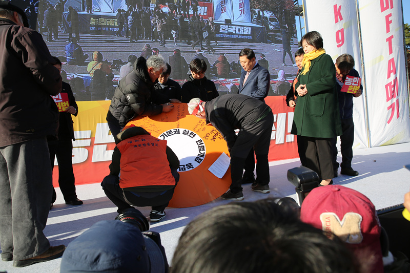 이날 집회는 농민과 소비자가 요구한 헌법 개정을 약속하는 사발통문퍼포먼스와 차전놀이 등 다양한 행사와 함께 진행됐다