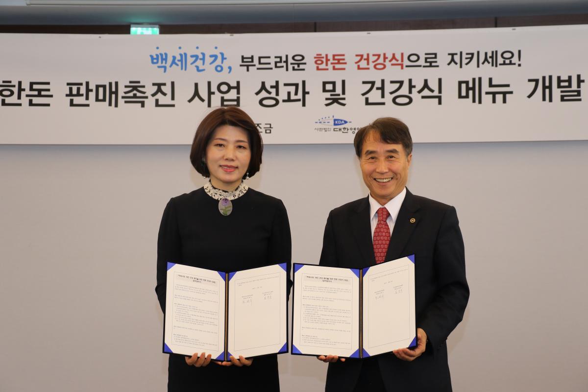 백세건강, 부드러운 한돈 건강식으로 지키세요! 한돈자조금-영양사협회, 한돈 건강식으로 실버푸드 시대 연다 한돈자조금-대한영양사협회, 13일 서울 롯데호텔서 ‘한돈 건강식 메뉴 개발 발표회’ 개최 노인, 환자 대상 한돈 건강식 메뉴 개발 ··· 고기 본연의 맛과 영양 살린 것이 특징 한돈자조금, 한돈 건강식 메뉴 대중화 통해 실버푸드 시대 열 것 한돈농가 비영리단체, 한돈자조금관리위원회(위원장 하태식)가 100세 시대를 맞아 노인건강증진과 한돈 소비활성화를 위한 고령친화 한돈 건강식 알리기에 나섰다. 한돈자조금은 13일, 대한영양사협회와 함께 서울 소공동 롯데호텔에서 ‘한돈 건강식 메뉴 개발 발표회’를 갖고 단백질 섭취가 어려운 노인, 환자, 유아를 대상으로 우리 한돈을 활용한 한돈 건강식 메뉴를 선보였다. 이 날 한돈자조금이 대한영양사협회와 함께 선보인 한돈 건강식은 우리 돼지고기 한돈을 주재료로 연화식 형태로 개발해 일반 음식과 동일한 맛과 모양을 가지고 있다. 또한 수비드 조리법(저온진공조리법)을 활용. 음식을 씹고 삼키기 편한 특징이 있어 씹는 데 불편함이 있거나 소화 기능이 약한 노인, 환자, 유아가 섭취하기 좋다. 이날 소개된 한돈건강식 메뉴는 『등심스테이크』, 『포크웰링턴』, 『한돈샐러드』 등 총 10여종에 달하며, 조리방법, 천연효소의 이용을 달리해 씹는 힘과 소화기능, 식욕이 떨어진 고령자나 환자 등이 손쉽게 고단백 영양식을 즐길 수 있게 개발됐다. 고기는 고령층이 선호하는 1위 고단백 영양식이다. 하지만 소화가 어렵고, 치아가 불편한 노인이나 유아들은 먹기 어려운 불편함이 있었다. 그러나 이러한 한돈 건강식의 개발로 누구나 쉽게 우리돼지 한돈을 즐길 수 있게 됐다. 한돈자조금 하태식 위원장은 “이번 선보이는 한돈 건강식 메뉴를 통해 노인뿐 아니라 음식 섭취가 어려운 환자나 유아, 어린이들을 비롯한 많은 사람들이 한돈의 맛과 풍미를 즐기고, 건강까지 챙길 수 있을 것으로 기대된다.”며, “앞으로도 한돈자조금은 건강식을 위한 메뉴 개발뿐만 아니라 식품기업과의 제품개발, 급식업체 메뉴 보급, 레시피 홍보 등을 통해 보다 많은 분들이 우리돼지 한돈을 보다 편하게 맛보고 즐길 수 있도록 노력하겠다.”고 말했다. 앞으로 한돈자조금은 한돈 건강식의 대중화를 위해 대한영양사협회와 업무 협약 체결에 의해 레시피 책자 배포, 영양사협회 홈페이지, 교육 사업 등을 통해 한돈 건강식의 맛과 영양을 알릴 예정이다. 한편 이러한 연화식은 인구고령화가 급속도로 진행되면서 식품시장에서 주목을 받고 있다. 농식품부와 한국농수산식품유통공사(aT)에 따르면 고령친화 식품 시장 규모는 2012년 5816억 원에서 2015년 7903억원으로 급증했다. 업계에서는 올해 실버푸드 시장규모가 1조 1000억원에 이를 것으로 전망하고 있으며, 이번 한돈 건강식 메뉴 개발로 다양한 관련 제품과 메뉴가 출시될 것으로 기대하고 있다.
