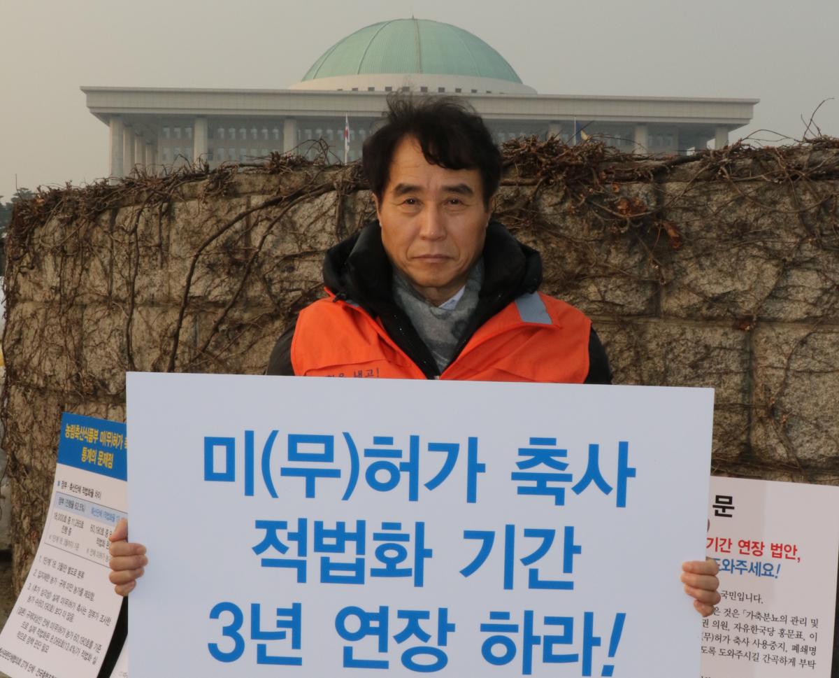 축산단체, 무허가축사 적법화 기한연장에 ‘총력’ 축산단체․한국당, 국회서 기자회견 호소...국회의사당 앞 릴레이 1인 시위까지 축산업의 존폐 여부가 달린 무허가축사 적법화 기한인 3월 24일이 70여일 앞으로 다가오면서 축산업계가 무허가축사 적법화 문제해결에 총력을 다하고 있다. 축산관련단체협의회(회장 문정진)・전국축협조합장협의회(회장 정문영)는 홍문표 의원을 비롯한 자유한국당 의원들과 지난 1월 15일 국회 정론관에서 무허가축사 적법화 기한 연장과 특별법 제정을 촉구하는 긴급 기자회견을 개최했다. 축산단체장들은 “정부와 국회가 그동안 실제적인 대책 마련에는 뒷짐을 진채 수수방관하더니 시한이 다가오자 그 책임을 축산농민에게 뒤집어씌우고, 마치 불법을 자행하는 집단으로 몰아가 생존권을 빼앗으려 한다”고 질타하며 “식량안보산업인 국내 축산업의 기반이 붕괴되고 수입육이 폭증하게 되면 그 피해는 오롯이 국민들에게 돌아올 것”이라고 경고했다. 이날 기자회견에는 국회 농림축산식품해양수산위원회 소속 자유한국당 홍문표 의원과 이만희 의원, 임이자 의원(환노위 자유한국당 간사)도 함께 나와 축산단체장들의 주장에 힘을 보탰다. 이만희 의원은 “자유한국당은 무허가축산 적법화 유예기간을 3년 연장해 축산농가들의 최소한의 생존권을 보장함은 물론, 환경적인 측면에서 개선방안 역시 심도 있게 논의할 필요성이 있다는 입장”이라고 밝혔다. 이밖에도 축단협과 전국축협조합장협의회는 국회 상임위 및 환노위원과 공감대를 형성키 위해 지난 10일 설훈 국회 농해수위원장, 11일 김성태 자유한국당 원내대표 등과의 면담을 추진해오고 있다. 아울러 축산단체장들은 1월 17일부터 18일까지 국회와 환경부 앞에서 무허가축사 연장을 촉구하는 릴레이 1인 시위를 벌이는 등 전방위적인 활동을 전개하고 있다.