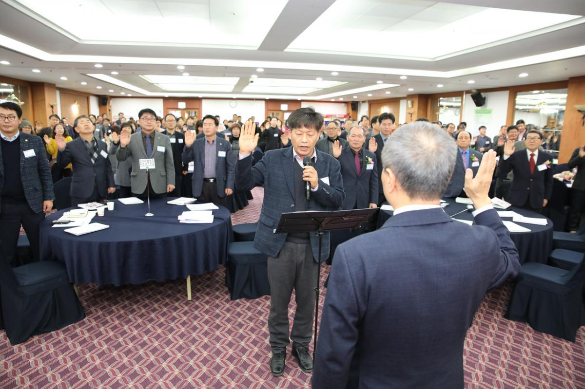 한편 한돈인들은 3월 31일부터 탕박등급제 전국 일제 시행을 앞두고, ‘등급제 정산 전면 시행을 통한 한돈 품질경쟁력 제고’를 위해 결의문을 채택했다. 괴산지부 홍용표 지부장 선창에 따라 고품질 돼지고기 생산에 최선을 다할 것, 돼지 수급 및 가격 안정을 위해 생산성 향상에 최선을 다할 것, 국민건강을 위해 안전하고 위생적인 돼지고기 생산에 혼신을 다할 것을 결의했다. 2017년 최우수지부에 완주지부 영예 정기총회에 앞서 하태식 회장은 전국 121개 지부조직을 활성화하고 2017년도 협회 발전에 많은 기여를 한 최우수 우수지부 및 특별상에 대한 표창을 실시했다. 2017년도 최우수지부에는 완주지부(지부장 김정기)가, 우수지부에는 원주지부(지부장 장성훈), 포천지부(지부장 최영길), 천안지부(지부장 정창용), 김천지부(지부장 정태주)가 각각 선정되는 영예를 안았다. 최우수지부 및 우수지부 선정은 전국 121개 지부 중에서 협회와 한돈산업 발전을 위한 지부 활동 내역과 대외 활동 참여도, 회비 납부, 회원 증가, 한돈팜스 입력 등 총 10개 항목을 객관적으로 평가하여 매년 최우수지부 1곳과 우수지부 4곳을 선발하고 있다.
